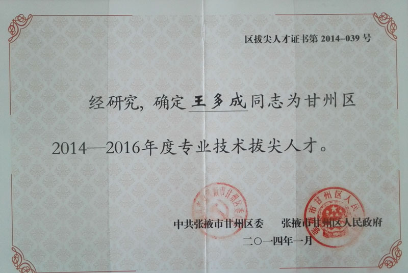 2014-2016年王多成甘州區專業技術…