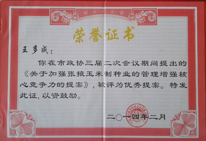 張掖市多成農業有限公司是一家以玉米雜交種生產經營為主的農業科技型民營企業。公司由兩個種子加工廠和1個良種繁育基地及1個優質梨示范基地組成。加工廠占地15.8萬平方米,擁有種子加工線3條,檢驗室2個,年生產、加工能力2000萬公斤。有良種示范基地2000畝,優質梨示范基地500畝。固定資產總值超億元。